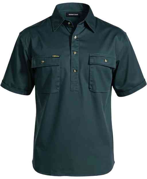 closed front cotton drill short sleeve shirt