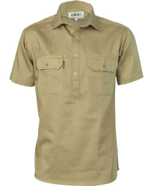 cotton drill close front work shirt ss