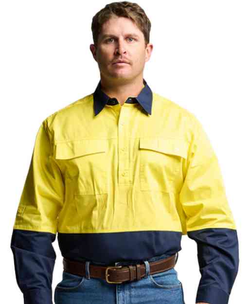 half button long sleeve hi vis work shirt