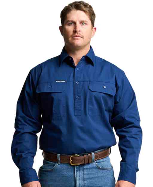 mens half button long sleeve work shirt