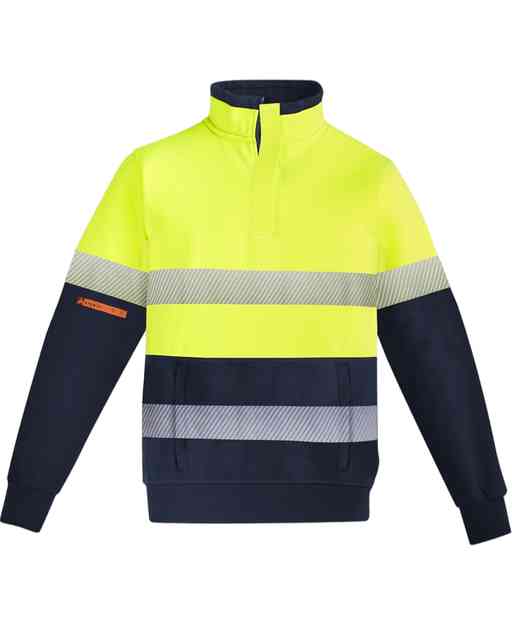 orange flame hi vis 1/4 zip brushed fleece pullover - hoop taped