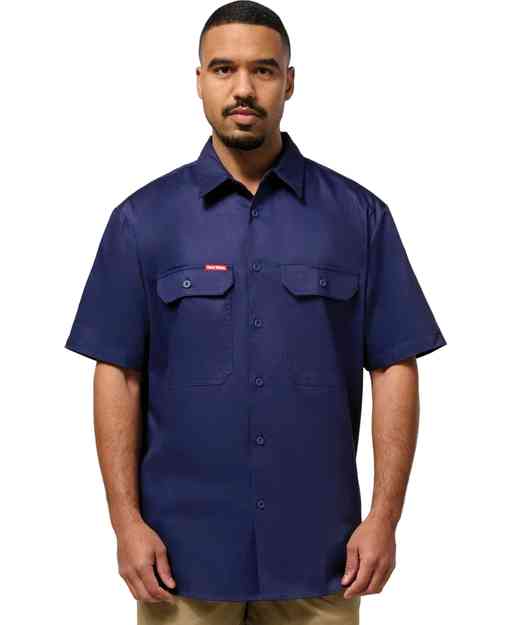 short sleeve open front cotton drill work shirt